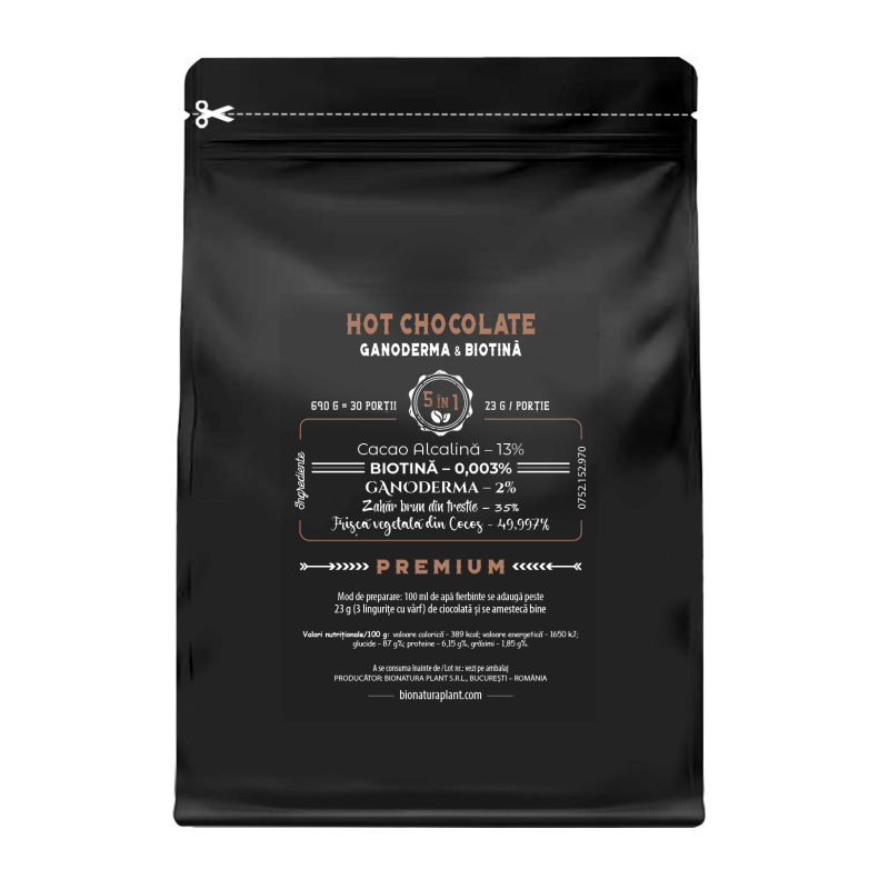 Hot Chocolate 5in1 cu Ganoderma+Biotina – 690g – veg (30 de portii)