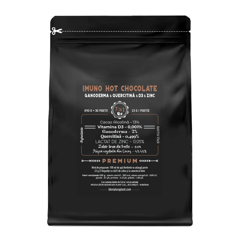 Hot Chocolate 7in1 cu Ganoderma & Quercitinã & D3 & Zinc – 690g – veg (30 de portii)