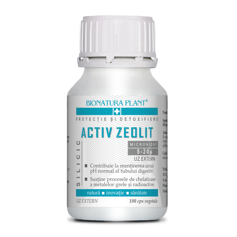 Contribuie la inhibarea proceselor de dezvoltare a celulelor neoplazice. Susține menținerea unei flore și a unui pH normal a tubului digestiv.Buna funcționare a sistemului cardio-vascularINGREDIENTE:Zeolit Silicic micronizat, cu 83% clinoptilolit –450mg/ capsulă;UZ EXTERNRecomandat pentru uz extern în trătarea afecțiunilor pielii (leziuni ușoare, acnee, dermatite, etc.) și ale cavității bucale (boli dentare, inflamații bucale, herpes, etc.) Poate fi aplicat direct pe gingii, pe periuța de dinți sau amestecat în pasta de dinți pentru periajul acestora.Se poate folosi direct ca pulbere aplicată pe aria afectată sau sub forma de cataplasmă.Se amestecă cu apă, argint sau aur coloidal, cremă/ulei de gălbenele, ulei de migdale, ulei de tea-tree, în funcție de tipul de leziune a pielii, pasta astfel obținută aplicându-se pe un tifon sterilizat și ușor umezit ce se va așeza peste zona afectată.UZ EXTERN – Efecte – Contribuie la:üÎntărirea sistemului imunitarüActivități de detoxifiere a organismului prin procese de chelare a metalelor grele (Hg, As, Cu) și radioactive din organismüProcesele de fagocitoză a celulelor care prezintă mutații și fragmentelor acestoraüMenținerea în limite normale a cantităților de uree, bilirubină și creatinină din sângeüBuna funcționare a tiroideiüBuna funcționare a ficatului și rinichilorüMenținerea sănătății sistemului osteo-articularMenținerea fertilității și a sănătății reproducerii