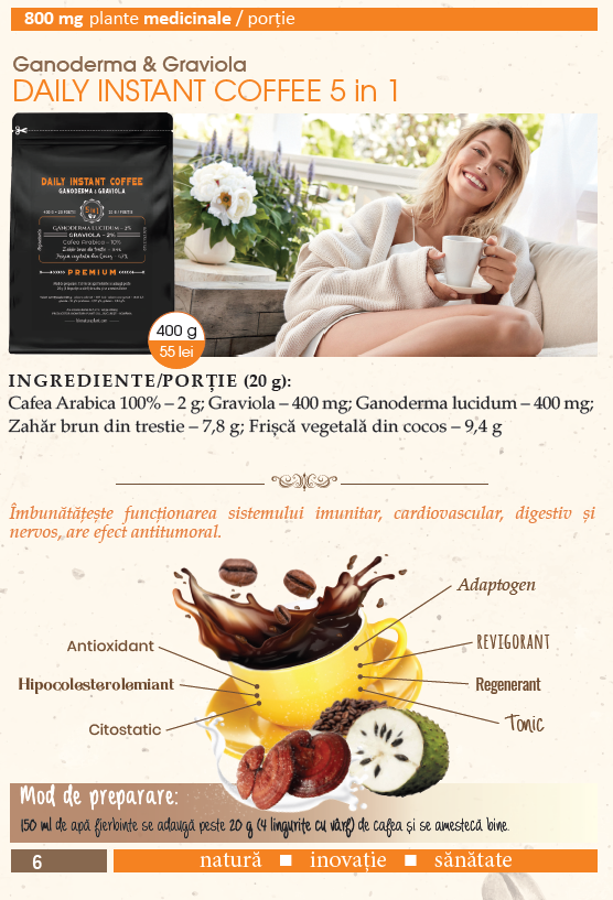 Daily Instant Coffee 5in1 cu Ganoderma+Graviola – 400g veg (20 de portii)