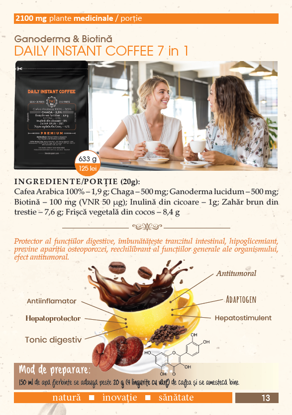 Daily Instant Coffee 7in1 cu Ganoderma si Biotina – 633g veg (30 de portii)