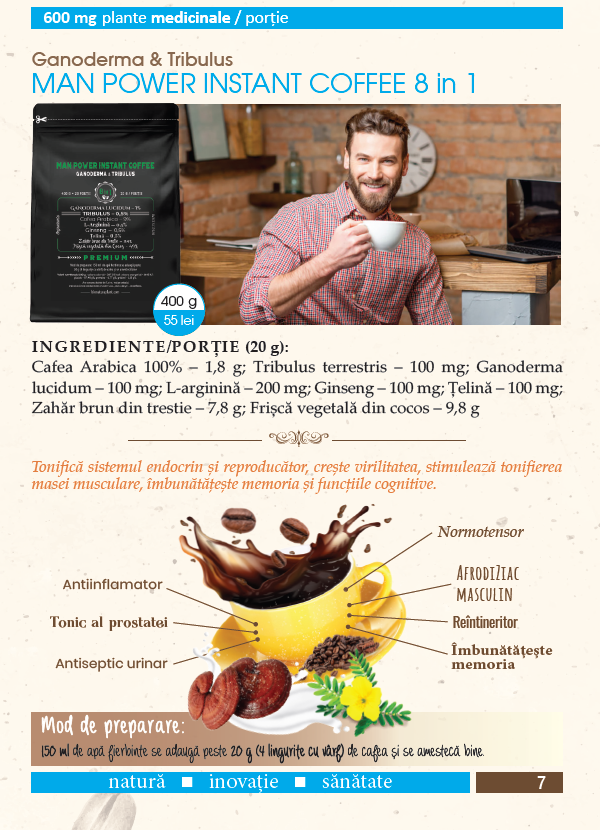 Man Power Instant Coffee 8in1 cu Ganoderma si Tribulus – 400g veg (20 de portii)