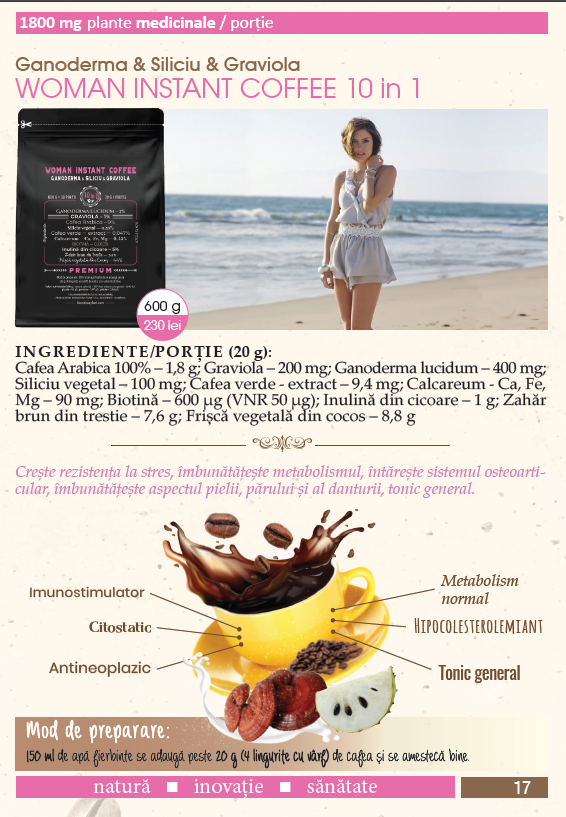 Woman Instant Coffee 10in1 cu Ganoderma Si si Graviola – 600g (30 de portii) – veg